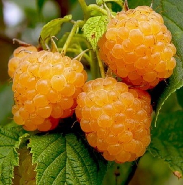 | Абрикосовая | Ягоды сорта имеют коническую форму и отличаются необычным желто-розоватым цветом. Название растение получило не просто так, а за нежный абрикосовый вкус. С каждого куста можно собрать до 4 кг ягод за сезон, который длится с начала лета до первых заморозков. Выращивать такую малину нужно только на солнечной стороне участка, к почве она тоже достаточно требовательна: лучше всего плодоносит на суглинистом и суперпесчаном грунте. |